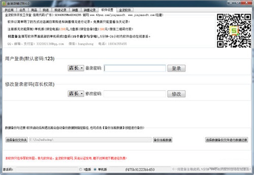 1、有店长和店员两个账号,初始登陆密码都是:123