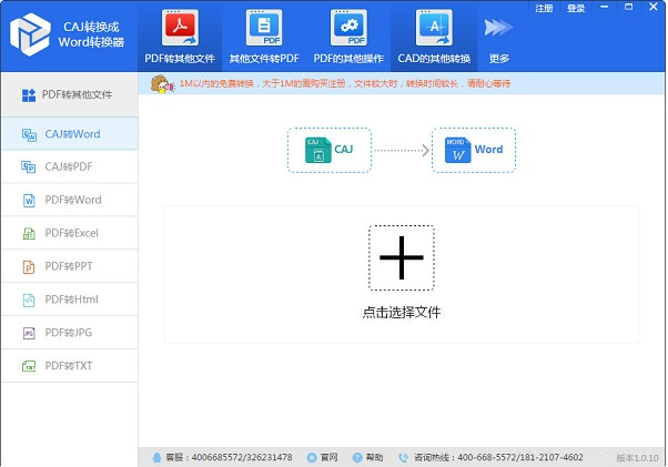 第四步:点击选择文件,添加CAJ文件;