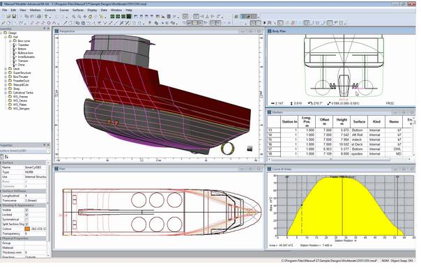 ??MAXSURF提供造船工程师与的船舶设计和分析过程的各个阶段的软件工具。 通过使用一个共同的三维表面模型,设计文件可以被优化以准确地流过的概念,最初,与详细设计阶段。 与MAXSURF,用户可以放心船体建模形式; 评估稳定性和强度; 预测性能; 并进行初步的结构定义和分析。