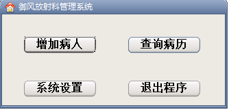 ??2、包括增加病人、查询病历、系统设置三大功能模块;