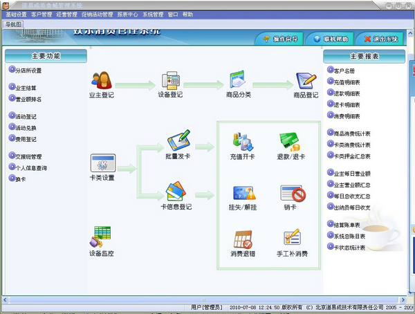 卡类设置:设置卡类的基本信息,退款、退卡信息,积分信息,卡有效期信息;具有增加、修改、删除、查找、打印、预览、导出等功能。