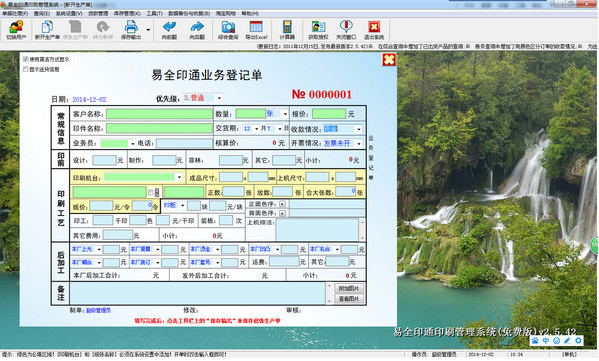 系统设置:易全印通印刷管理系统官方版包括基本参数设置,操作员管理,机台管理,纸张管理,业务员管理,客户名称管理,印件名称管理,局域网设置
