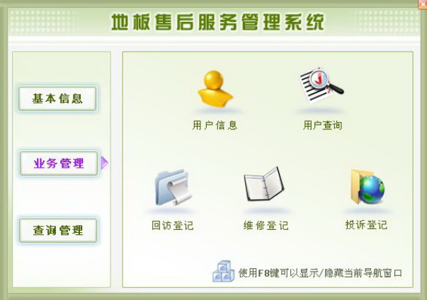 宏达地板售后服务管理系统官方版是专门用于地板行业管理的工具。宏达地板售后服务管理系统官方版包括回访查询、维修期间查询、投诉期间查询。
