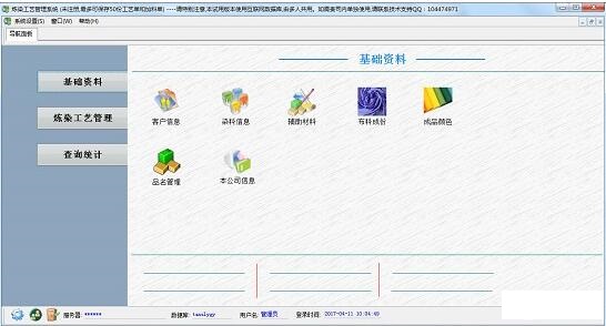 炼染工艺管理系统是一款相当实用的管理软件,是为染整企业管理炼染配方、炼染工艺管理而专门开发的系统,摒弃了其它花哨没用的功能,因为专用所以易用。它拥有人性化设计,智能化设计。非常不错的一款软件,欢迎大家使用吧!