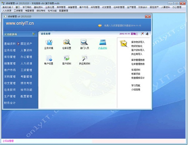 Onlyit综合管理软件是十分优秀的企业管理的软件。Onlyit综合管理软件人事档案管理、工资管理、考勤管理、绩效管理、用户管理。