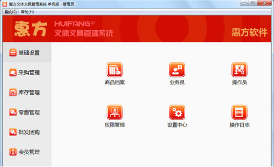 惠方文体文具管理系统是很专业的一款管理的软件。惠方文体文具管理系统实现了更多功能;如批发价格可以设置多个;录入商品档案时可以直接录入初始库存等。