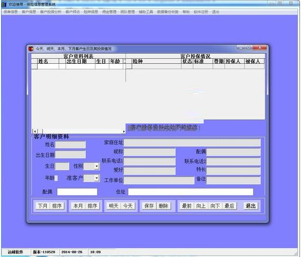 4、【客户拜访】 系统自动生成本月、下月、今天、明天过生日的客户信息、投保信息资料。