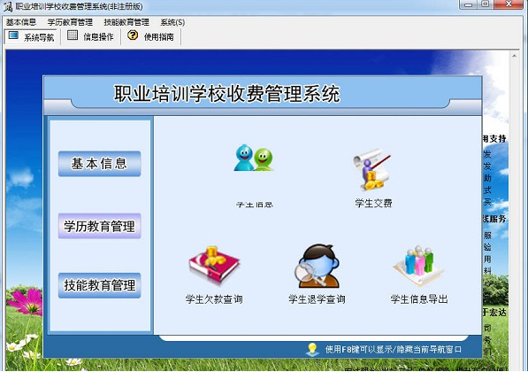 学历教育管理:宏达职业培训学校收费管理系统官方版支持学生信息、学生交费、学生欠款查询、学生退学查询、学生信息导出