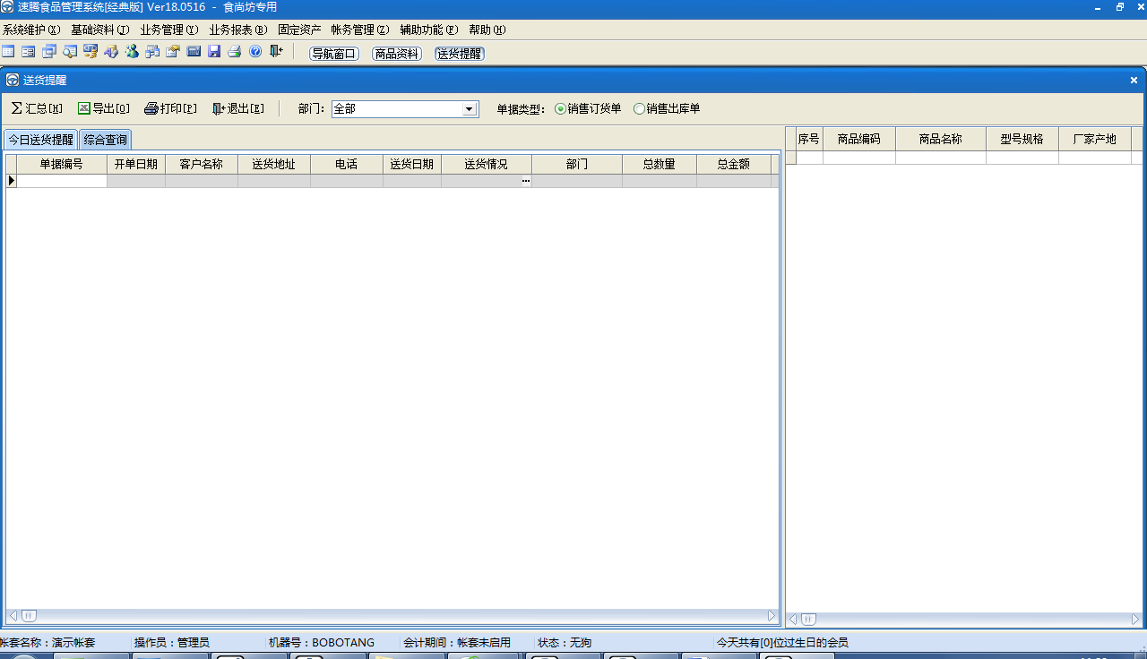 速腾食品管理系统经典版支持智能订货。既可以根据商品资料中设置的最高库存、最低库存、供货商及当前库存自动生成订货清单,也可以通过提取补货数据生成订货清单,还可以根据指定时间段的销量生成订单,让您的订货工作轻松、方便;