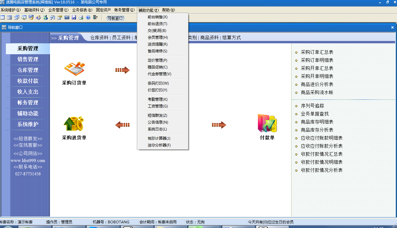支持POS销售。可以根据需要选配打印机、读卡器、会员卡、条码枪、钱箱、顾客显示屏及小票打印机;可以根据自已喜好设计各种有特性的打印格式。快捷键丰富多样,可以自己定义,完全可以用键盘取代鼠标的操作。销售时可以适时掌握每一个商品的当前库存数,销售成本、销售毛利,可以随时盘点;