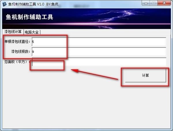 1、在鱼机制作辅助工具绿色版的相应位置输入相关参数