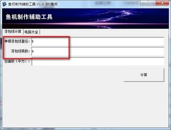 1、在鱼机制作辅助工具绿色版的相应位置输入相关参数