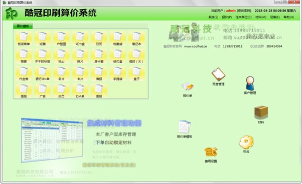 ??算价模板,根据常用的印件这款印刷报价管理软件预置了26款同的算价模板。算价时可打开模板后根据情况稍作修改即可完成算价;