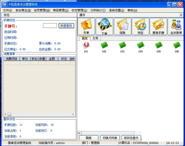 千旺桑拿足浴管理系统可以对足浴的管理管理做到很详细。千旺桑拿足浴管理系统管理人员随时查看营业数据,轻松掌握、管理。