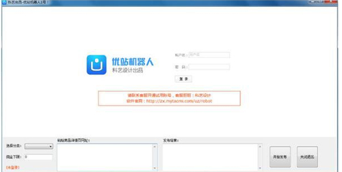 优站机器人壹号官方版是一款拥有众多实用功能的商品批量发布软件!可以自动发布商品,也能批量删除商品。专为广大优站站长开发,可以让您不限数量的发布淘客商品,彻底告别低效率的手工发布方式。还提供了批量删除、过滤重合或低佣金或已经下架的商品,自动化操作,效率极高。