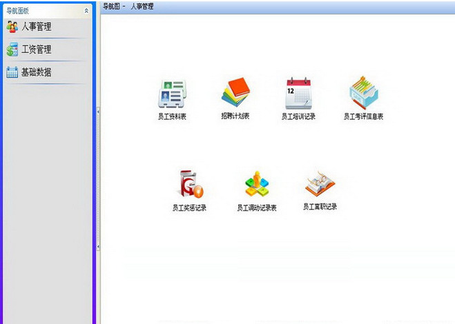 E立方免费人力资源管理软件分为三大模块:人事管理、工资管理、基础数据。