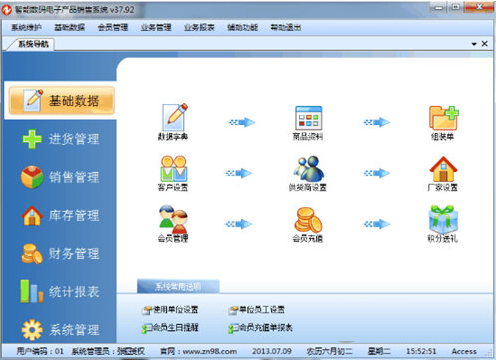 基本设置:商品信息,供货商,客户,员工,仓库等基本参数的设置。