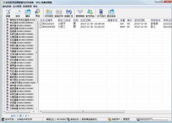该软件以全国最新的统一的《出生医学证明》为样本,对数据具有高度的保密性,可方便快捷地打印出很规范的新版出生证,可连续输入和打印多胎的出生证。