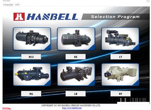 ??Hanbell(汉钟压缩机选型软件)是一款非常不错的机械电子软件,该软件可以供很多模型型号查看,在软件主界面就可以显示型号,可以按照软件的图片找到自己需要设计的压塑机类型。真的特别实用,值得下载哦。
