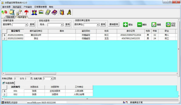 三、查询管理(按法医查询、按鉴定书编号查询、按委托鉴定单位查询)。