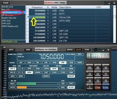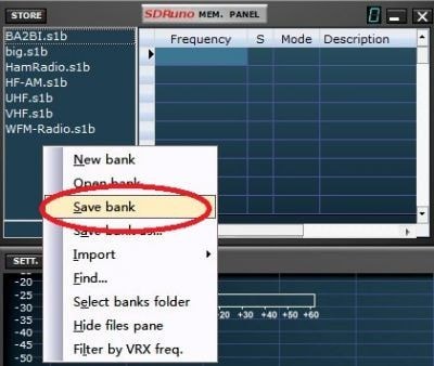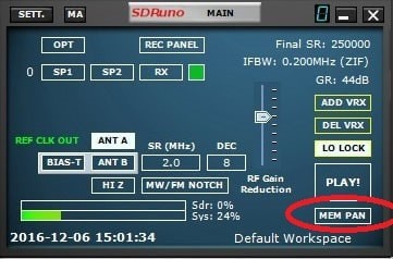 打开SDRuno 在主窗口打开存贮器控制面板点击 MEM PAN
