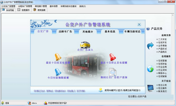 1、公交车广告管理:公交车广告、公交车广告录入、公交客户广告明细表(单记录)公交客户记录表、公交车广告查询、最近十日应发布提醒、公交客户广告明细表(单记录)、最近十日停止发布提醒、公交客户广告明细表(单记录)、今日付款期限提醒、公交客户记录表、期间公交广告客户情况表;
