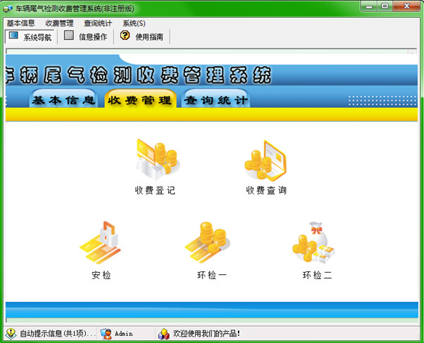 2、收费管理(收费登记、收费查询、安检、环检一、环检二);