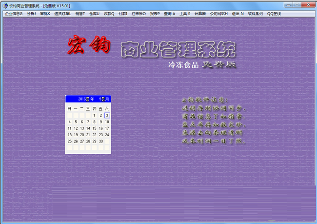 宏钧冷冻食品商业管理系统是功能很前面的一款操作软件。宏钧冷冻食品商业管理系统可以对食品的管理很详细,使用起来也很方便简单。