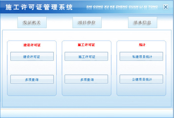 3、施工许可证:施工许可证录入、多项查询。