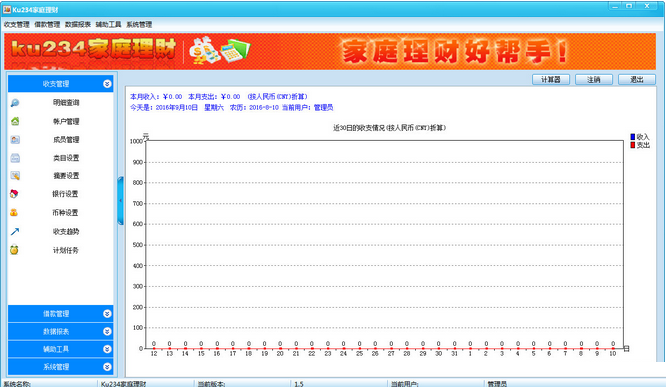 6、丰富的报表功能,包括年、月、分类、收付人、帐户等各类报表,同时支持各用户只显示自己的报表信息。