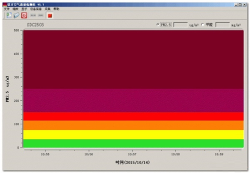 开机默认显示当前PM2.5数据曲线,SDL301、SDL307两种型号的产品可以同时显示PM2.5和PM10曲线。