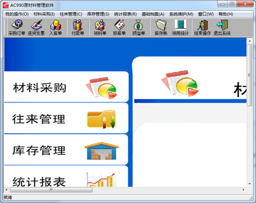 6、专门设计的跟AC990财务软件的接口:通过该接口程序,用户可以把进销存里面的数据有选择性的导入到AC990财务软件中,减少重复劳动,提高管理效率。