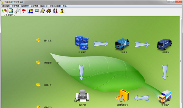 ??流程: 收货登记——出货登记——发货登记——转运登记——收费信息登记——收货单据打印。