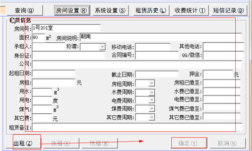 2、这时就能在这里进行相关输入,设置完成就点击【出租】,在然后选择“确定”