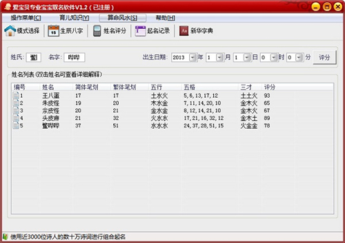 5、支持高分模式取名,结合三才五格生辰八字等多方面综合考虑高分好名。