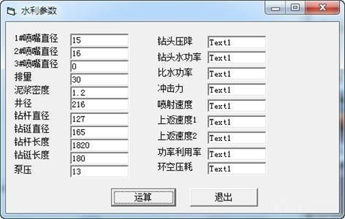 打开软件,了解软件界面,在界面的左侧输入相关的数据,例如排量、井径、钻杆直径、钻铤直径等,点击运算,软件即可为您得出右侧的相关结果。
