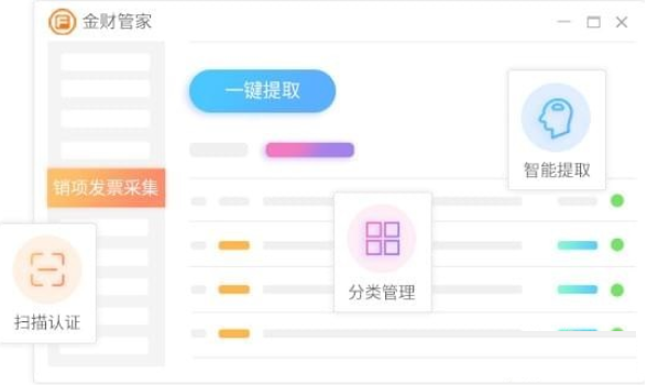 你所需要的进销项发票数据,一键自动提取,同时还可以进行发票在线扫描认证,分类管理各种发票数据