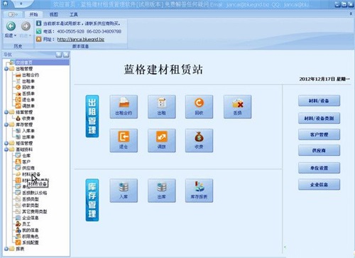和手工单据对应,管理建筑机械材料出租业务,并且管理建筑材料的回收。