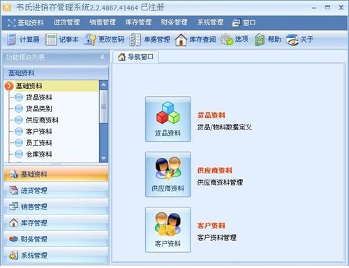 5、基础资料:货品资料、客户资料、供应商等