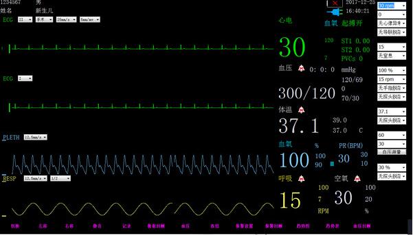 新生儿监护仪软件显示详细的生命数据