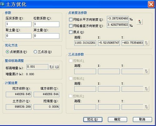 11.改进土方优化功能,土方优化时自动保存最初松散系数、最终松散系数、优化方法以及优化参数,以便下一次优化时使用。