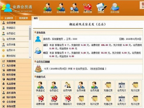 2、充值提现管理:系统支持会员卡充值与提现,充值记录与提现记录清晰可查,充值后可短信通知会员。