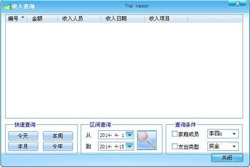 3、对收支情况进行过滤查询,过滤选项包括日期、收支人员、收支内容等等;