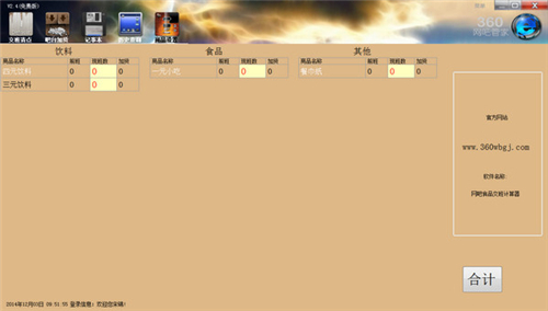 360网吧交班计算器官方版信息录入简单明了,查询统计功能强大,为日常的业务管理提供了完整的解决方案。是提高工作效率的好帮手。用于网吧商品库存、销售记录管理,可以提高网吧收银员交接班的效率和准确性,远离纸跟笔及繁重的清点商品麻烦。