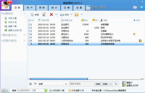 6、使用了【事情分类】在归类您的收支,便于统计、核算。而没有使用其它财务软件的会计科目、账户等晦涩的概念。