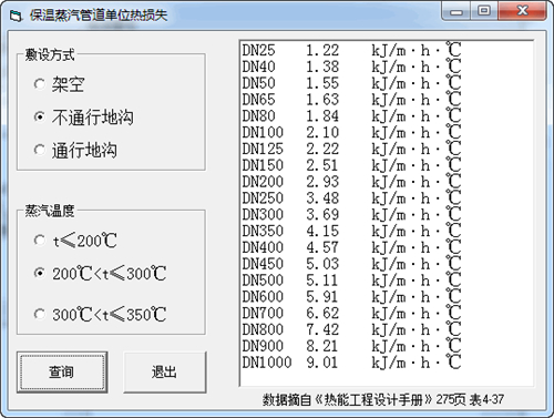 ??2、给出蒸汽温度、压力、流量,点击“选择管径”按钮,根据流速计算出合适的管径,如果没有合适的管径,给出最接近合适流速的管径