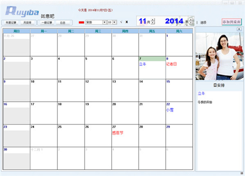 如意吧官方版是一款界面美观,操作简易的日程管理软件,功能丰富而实用,实用性、针对性强。不用复杂的操作,让您操作简便、提高工作效率!直观的记录工作行程,会议安排, 符合白领一族简洁,易用。每个月的工作事项一目了然.资料存储在本地硬盘,便于随时查看修改, 提供了密码保护功能。
