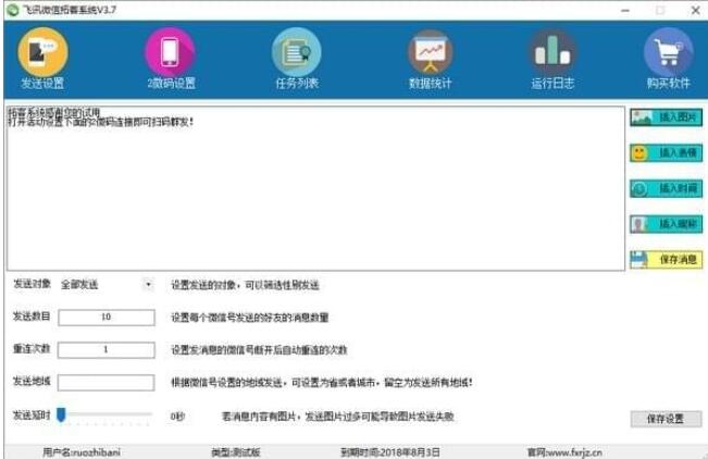 软件支持多种发送内容设置,内容可以插入随机变量,插入图片,插入表情,解决了传统群发只能设置单一消息的问题,更加利于营销宣传;