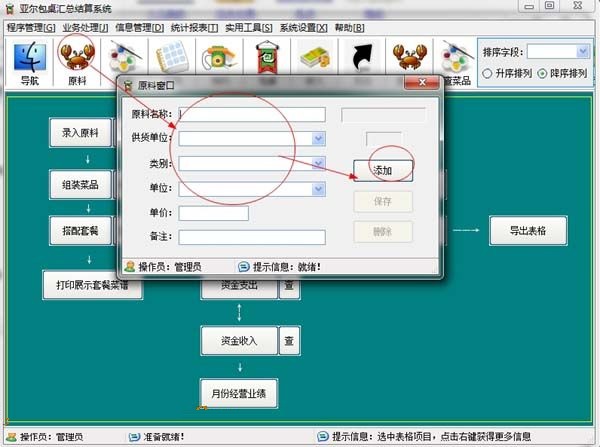 ??亚尔包桌汇总结算系统使用说明: