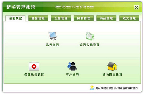 1、基础数据主要包括品种资料、饲料名称设置、保健免疫设置(仔猪保健免疫设置和母猪保健免疫设置)、客户资料和场内圈舍设置(种猪圈舍设置和生猪圈舍设置);